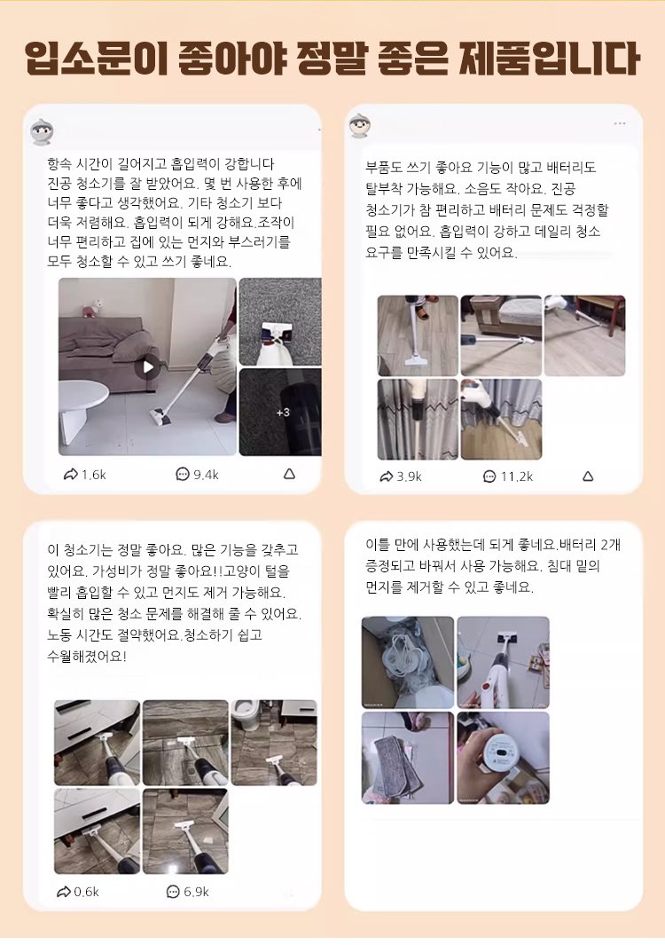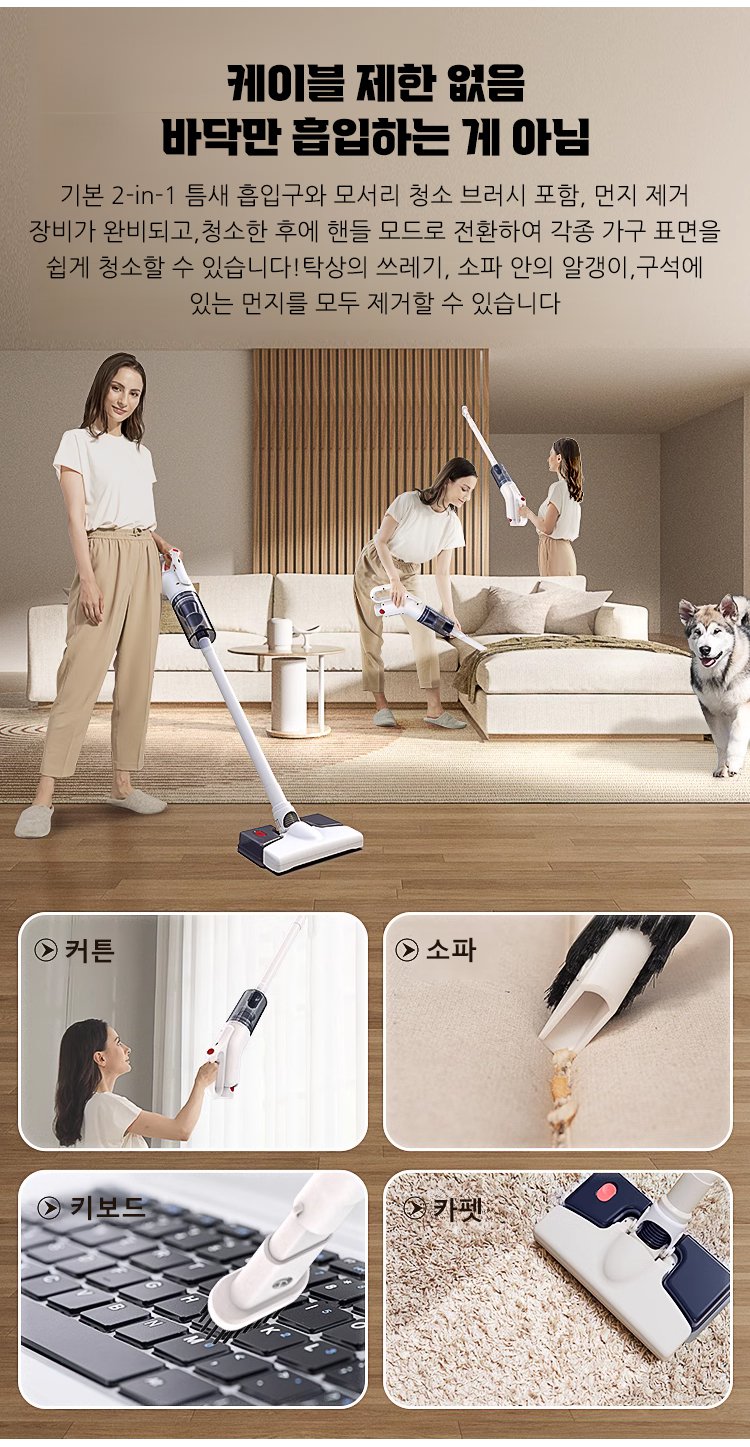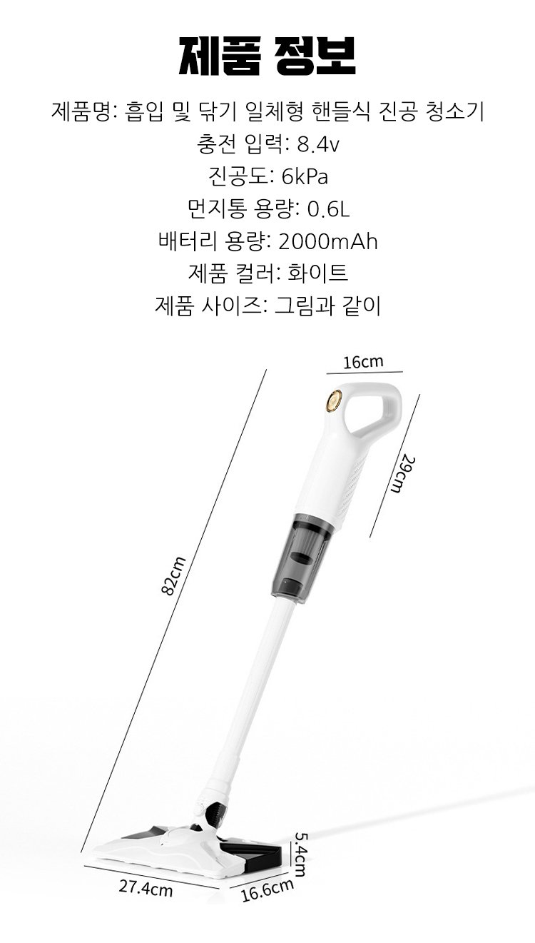 [무선 흡입 및 닦기 일체형] 강력 핸들식 진공 청소기